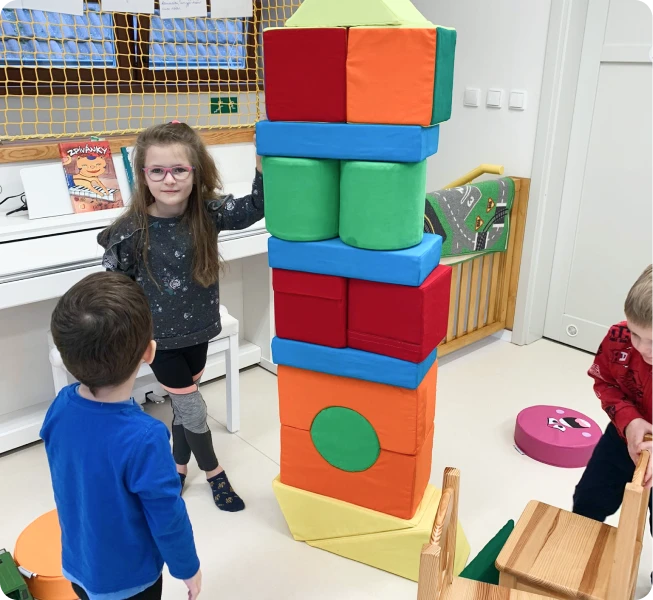 S dětmi se cvičí dětská jóga, probíhá všestranná pohybová příprava, pečující osoby byly také proškoleny v oblasti zdravotní tělesné výchovy s prvky fyzioterapie. Rodiče od nás dostávají „měsíční pohybové výzvy“.